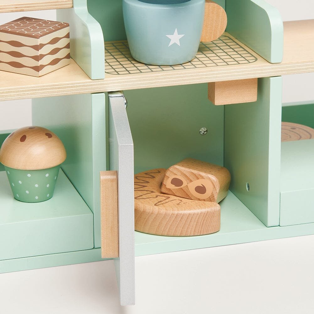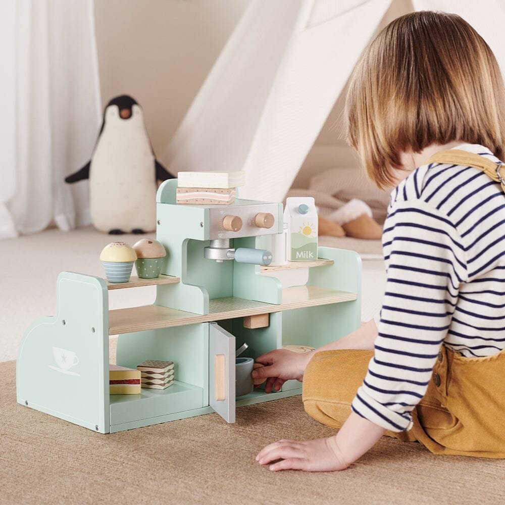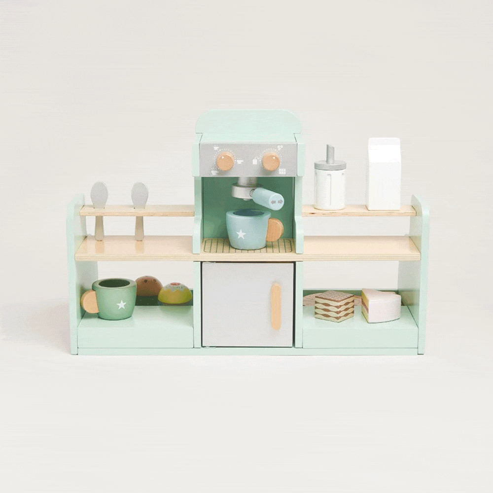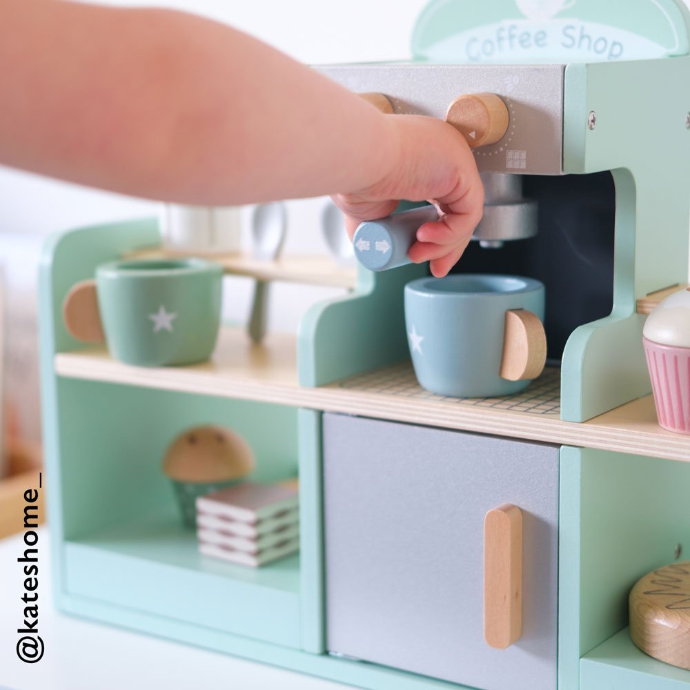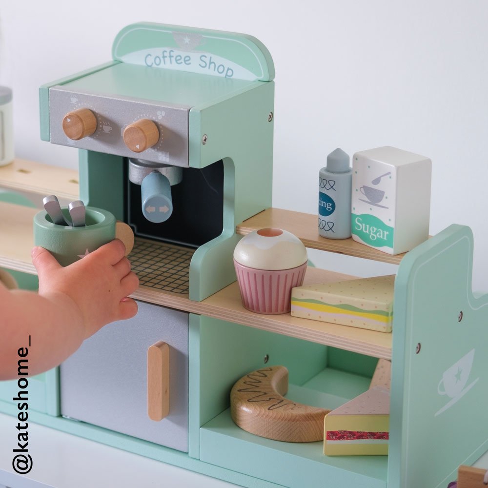 Beautifully made from painted wood, our lovely play coffee shop includes a whopping 17 accessories including coffee cups, spoons, sandwiches and cakes, as well as the all important coffee machine! This toy has been designed to inspire creative role play and practicing those all important fine motor skills.