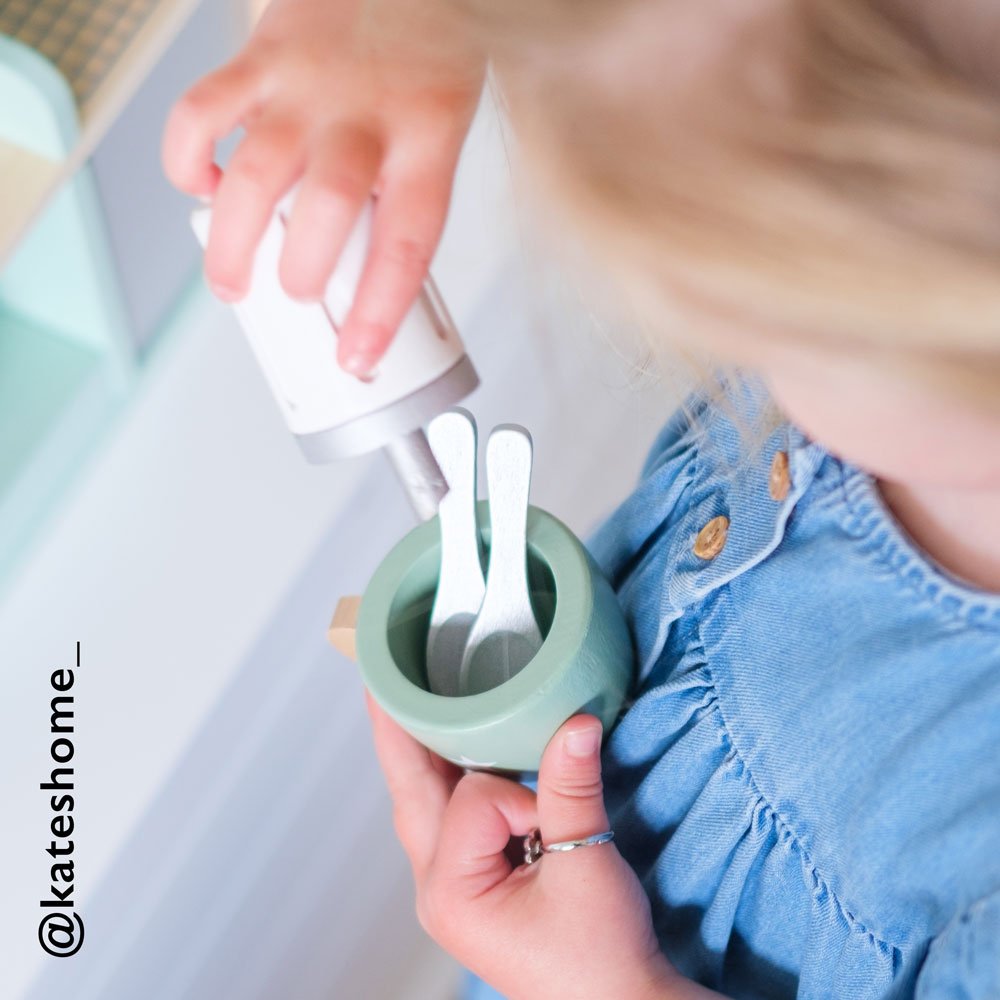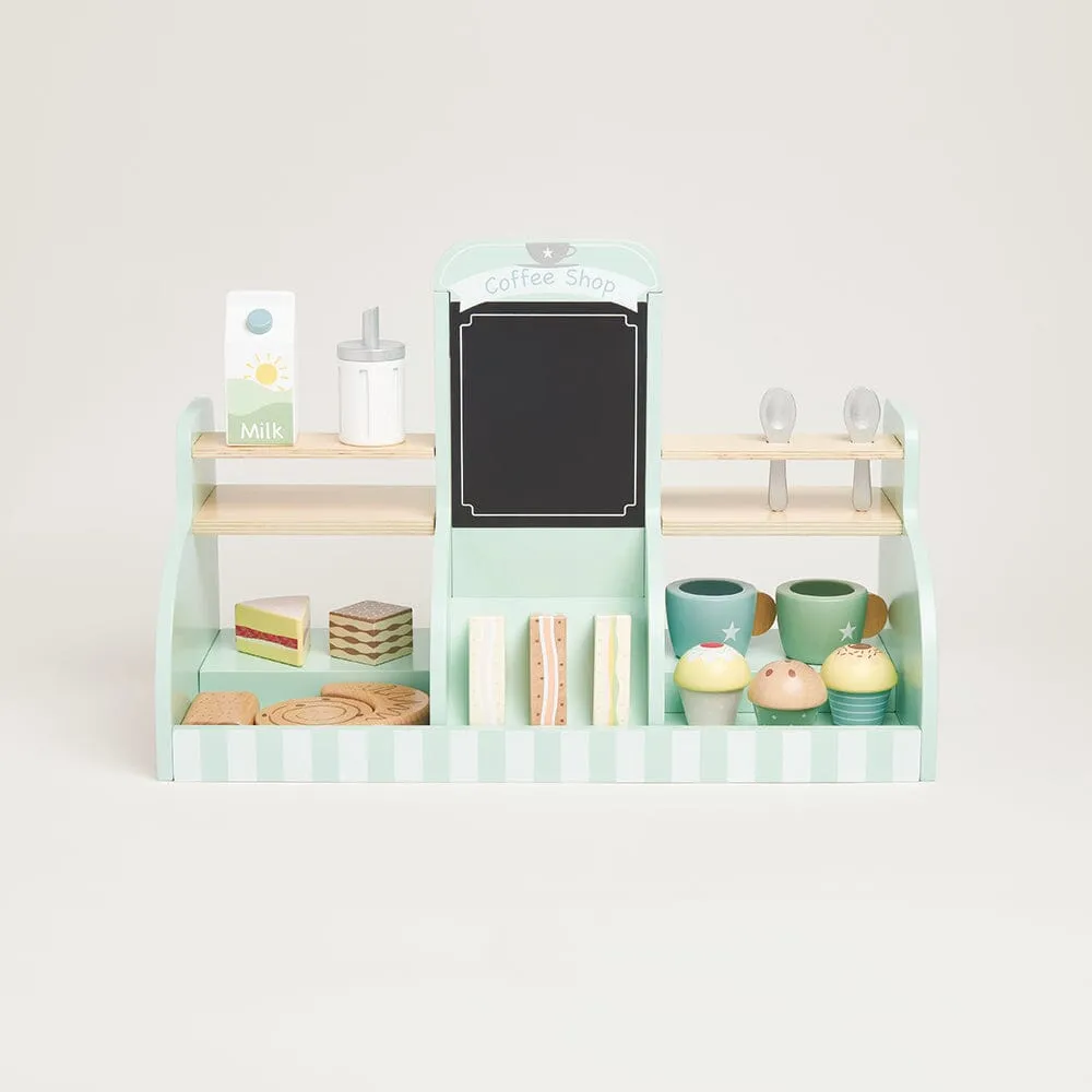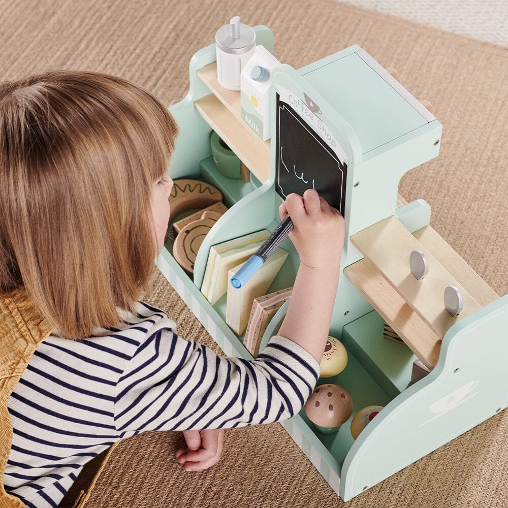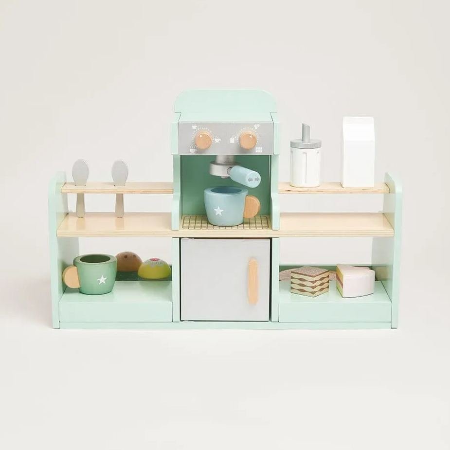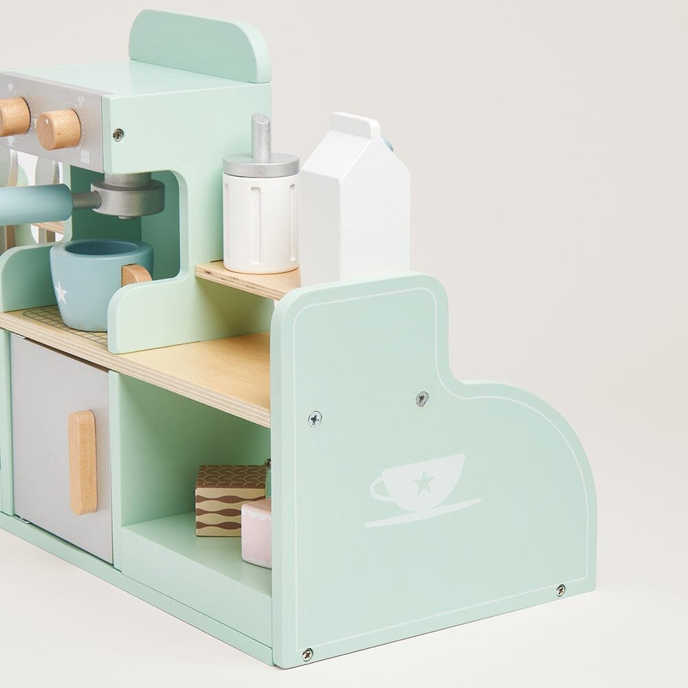 Beautifully made from painted wood, our lovely play coffee shop includes a whopping 17 accessories including coffee cups, spoons, sandwiches and cakes, as well as the all important coffee machine! This toy has been designed to inspire creative role play and practicing those all important fine motor skills.